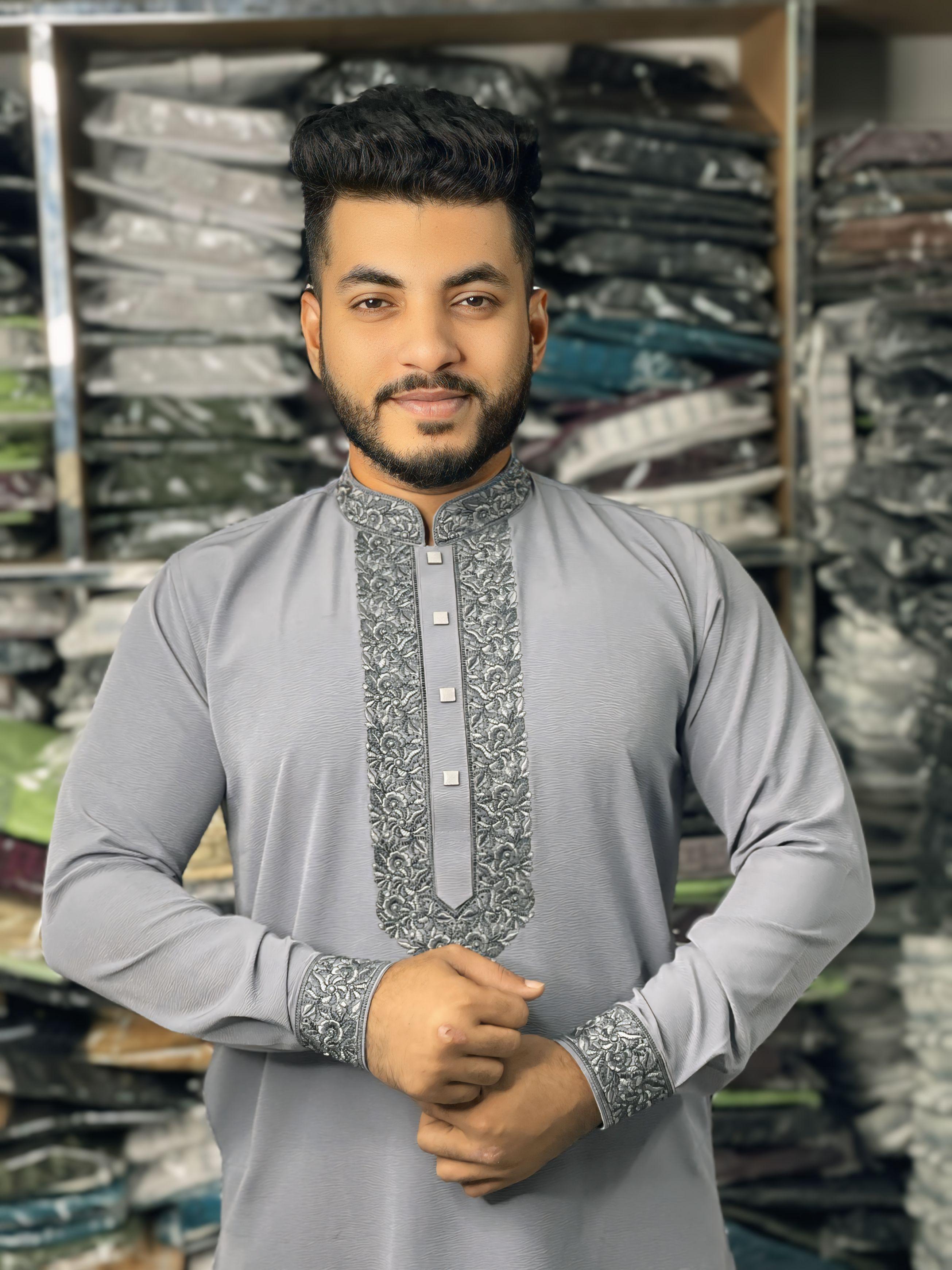 কাজ: কলার ও হাতায় নিখুঁত এমব্রয়ডারি।