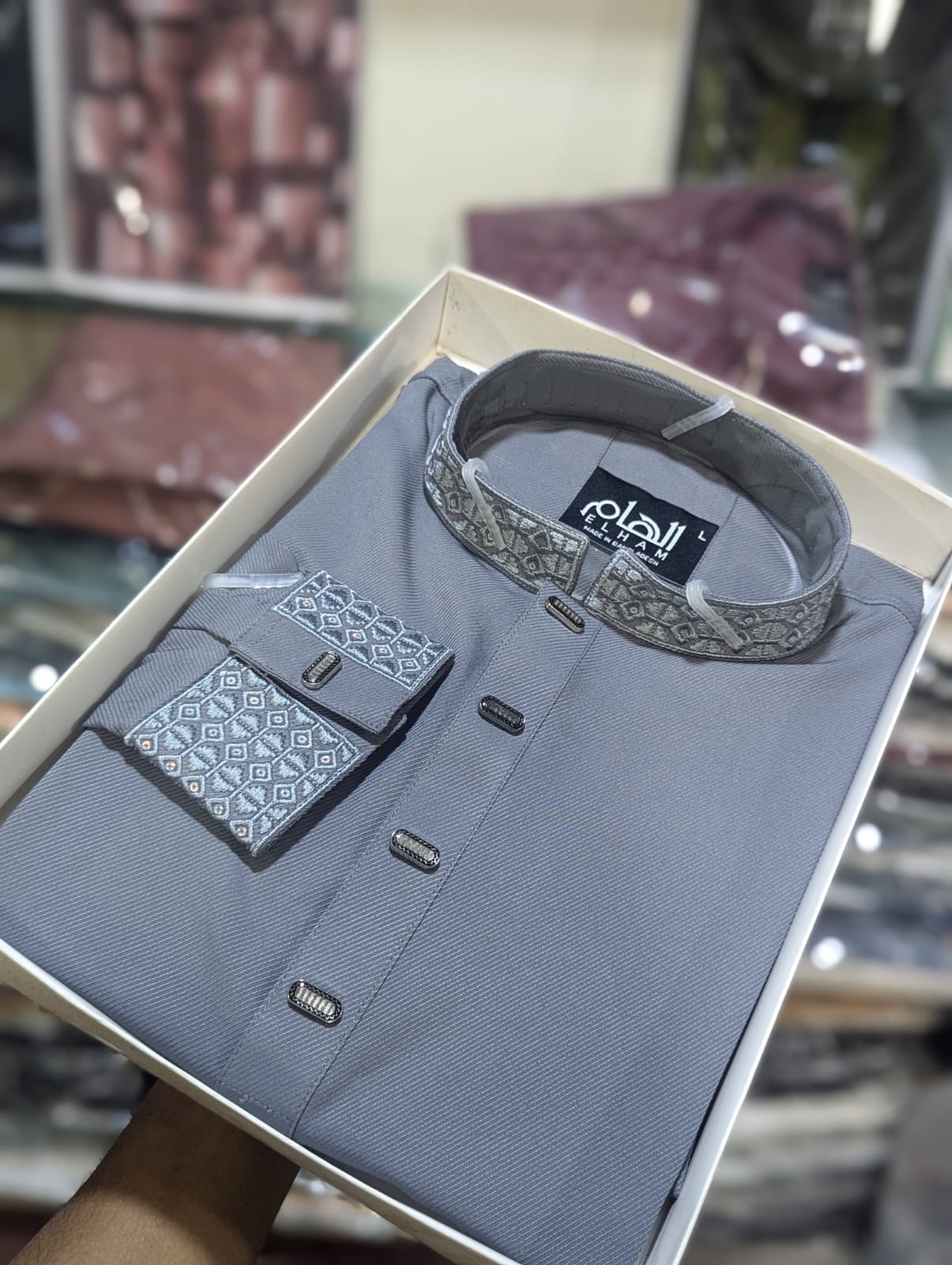 কাজ: কলার ও হাতায় নিখুঁত এমব্রয়ডারি।